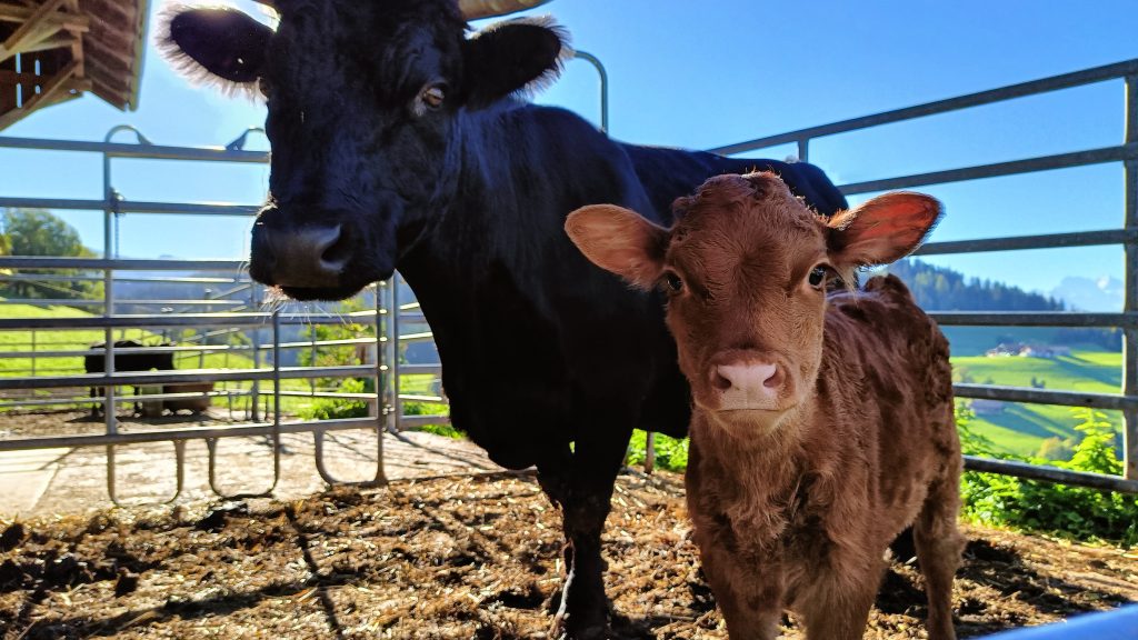 In Zusammenarbeit mit den Metzgereien aus unserer Region bieten wir Fleisch ab Hof an, so naturnah produziert wie möglich. Nebst Frischfleisch umfasst unser Angebot auch weiterverarbeitete Spezialitäten wie Trockenfleisch, Dauerwürste oder Hamburger sowie je nach Saison auch pflanzliche Produkte wie Gartengemüse, Kartoffeln oder pasteurisierten Süssmost.